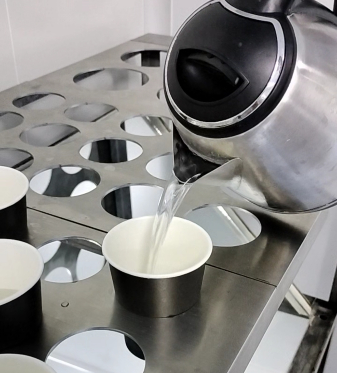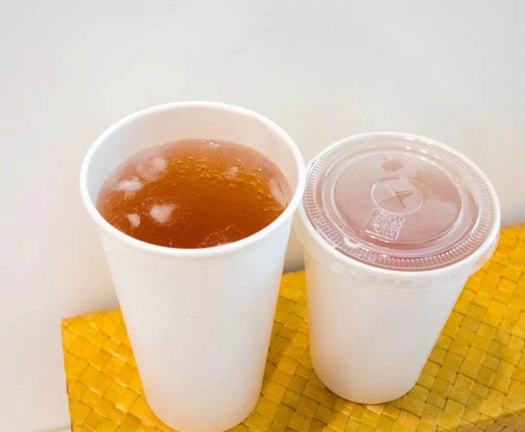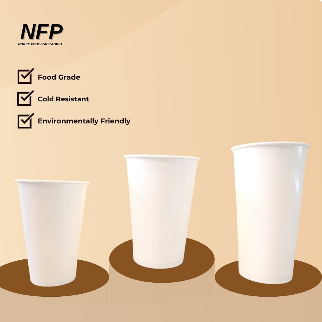 A drinking cup made from paper material coated with food grade material, making it suitable for packaging both cold and hot beverages.